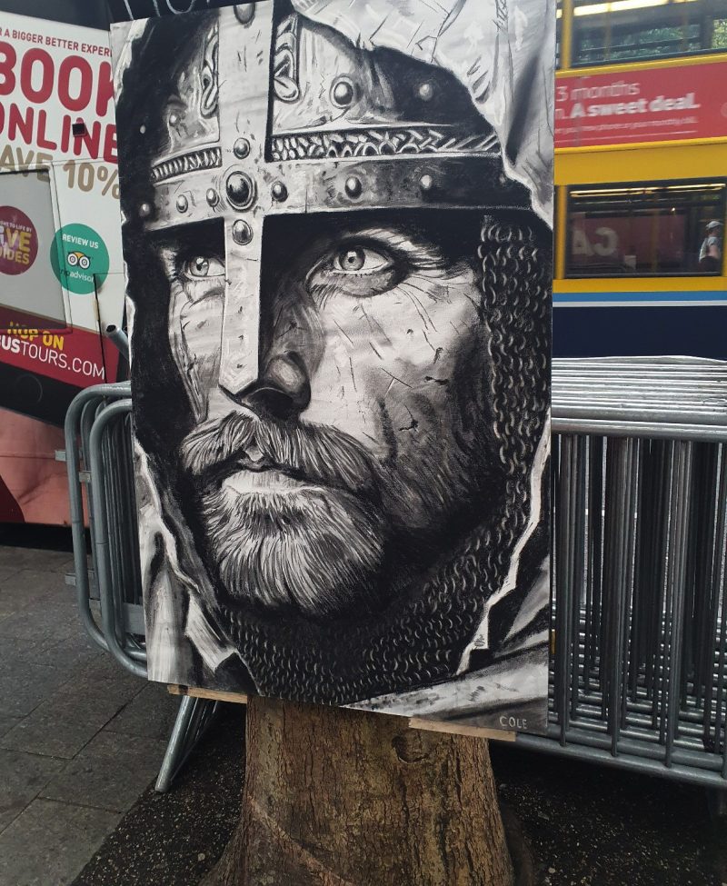 ➔ Exclusive and impressive Very Large Ready-to-Hang (no frame needed) Original Charcoal Drawing of Montgisard Crucesignatus on 5cm Deep Profile Archival Wood Canvas Box. Drawn on O’Connell Street, Dublin Ireland by Cole.
