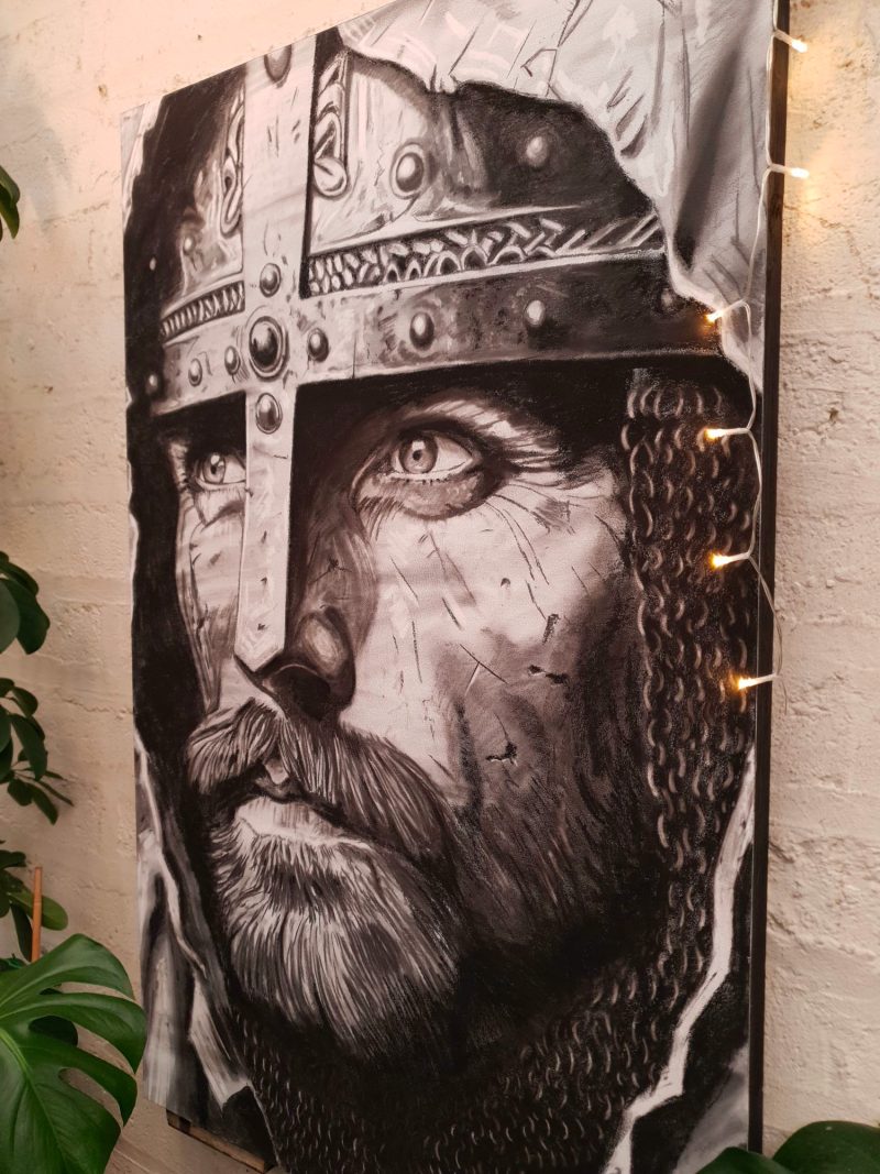 Montgisard Crucesignatus was my attempt to capture the crusader spirit at the Battle of Montgisard in 1177, where the young King Baldwin IV of Jerusalem, despite his affliction with leprosy, led a vastly outnumbered Crusader force to a miraculous victory against Saladin’s Ayyubid army. This pivotal clash near Ramla in the Levant halted Saladin’s invasion of the Kingdom of Jerusalem, vastly influencing the course of the Crusades and Christian medieval history.